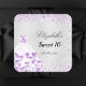 Elegant and glamourous and girly for a Sweet 16, 16th birthday party. A faux silver metallic looking background decorated with purple faux glitter dust. Personalise and add a name and date.