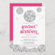Sweet 16 Silver Retro Disco PINK Glitter Invitation