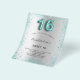 A modern, stylish and glamourous invitation for a girl's Sweet 16, 16th birthday party. A faux silver looking background, decorated with teal coloured glitter dust. Personalise and add your name nad party details. Number 16 is written with a balloon style font, script.