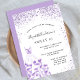 A modern, stylish and glamourous invitation for a Sweet 16, 16th birthday party. On the front: A white background with violet, lilac sparkles, a violet dress. The name is written with a modern hand lettered style script. Personalise and add your party details.