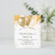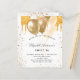 For an elegant Sweet 16, 16th birthday party. A chic white background. Decorated with faux gold glitter drips, paint dripping look and balloons. Personalise and add a name, age and party details. The name is written with a hand lettered style script