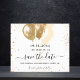 A chic white background decorated with faux gold glitter and balloons. Personalise and add a date and name/age. The text: Save the Date is written with a large trendy hand lettered style script.