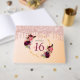 A Guest Book for a Sweet 16, 16th birthday party. A chic golden and blush pink gradient background with a faux gold geometric frame. Decorated with dark purple and burgundy flowers, roses and boho style feathers. Rose gold faux glitter drips, paint drip look on the front and the back. Templates for a name, age 16 and a date. Date of birth or the date of the party. The name is written with a hand lettered style script, pink coloured letters, age 16 in purple and the date with black numbers. Add your text on the spine.