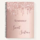 A notebook for a girly and glamourous Sweet 16th birthday. A faux rose gold background with an elegant faux rose gold glitter drips, paint drip look. The text: Sweet Sixteen is written in dark rose gold with a large modern hand lettered style script. Tempate for a name. Perfect as a birthday party guestbook or for party planning and organising.