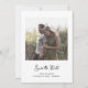 This simple and stylish, black and white wedding save the date card features whimsical, vintage style script typography with your photo and a scannable QR code for your wedding website or details.