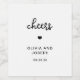 These simple and stylish, black and white wedding wine labels feature whimsical, vintage style script typography that says "cheers," along with a matching heart. An elegant, classic minimalist look that is still unique and contemporary.
