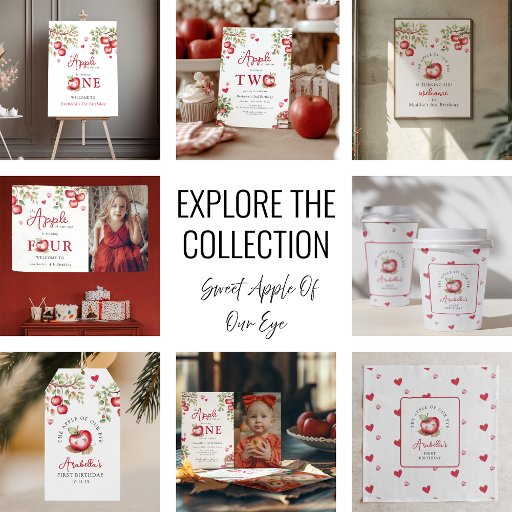 Celebrate the fourth birthday of your child with a dash of whimsy and a whole lot of love. Our apple-themed watercolor invitations are the perfect way to announce your little one's special day. With juicy red apples, a sprinkle of hearts, and modernly designed text, these invitations are sure to capture your heart as your 'apple of the eye' captures theirs.