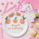 Sweet as a Peach! Birthday party plates with peaches and peach coloured plaid.