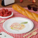This cute "Sweet as a Peach" girl's birthday paper plate features a white background with a peach in watercolor framed by a blush pink border. Personalise for your needs.You can find more matching products at my store.