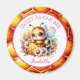 Personalised magnet. Watercolor style ai art depicting a cute honey bee sitting on a patch of pink flowers and honey. Make an adorable baby shower or new baby gift.