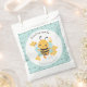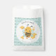 Cute baby shower favour bags for a baby boy shower with a cute baby bee and modern honeycomb pattern. Easily personalise the text or leave it blank. Available also the similar design for a girl baby shower. - Kate Eden Art