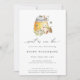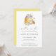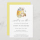 Sweet as can bee, baby shower invitation. Cute watercolor honey bees, honey jar and summer garden floral arrangement. Back of card features solid coordinating yellow colour.