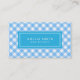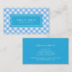 Business card featuring a baby blue gingham pattern with a blue centre on the front. Card has a matching blue back side. This trendy business card is ideal for various professions like interior designer, chef, baker, blogger, babysitter, etc.
