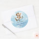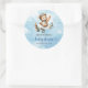 Celebrate your little aviator’s upcoming arrival with this adorable boy baby shower sticker featuring a cute teddy bear pilot flying a vintage airplane. Designed in a charming blue and brown color palette, this aviation-themed sticker adds the perfect touch of sweetness and adventure to any baby shower décor. Use it for favor bags, envelopes, gift packaging, party décor, thank-you tags, or diaper raffle prizes to instantly elevate your event’s theme.
