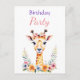 Sweet Baby Giraffe Floral Girl's Birthday Party Postcard