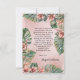 A collage of sweet wild safari jungle baby animals -- giraffe, zebra, panther, tiger and elephant -- are nestled cosily among the tropical hibiscus and monstera greenery in this "Thank You" Baby Shower design. Background is a gradient pink watercolor. Back features two corner tropical swags over a repeat of the front watercolor background and your unique message. Composite design by Holiday Hearts Designs.