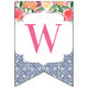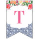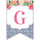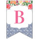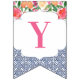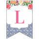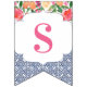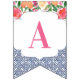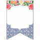 Bunting banner flags combining vintage dark blue Spanish-style tiles with citrus and bold florals. Shown here for a baby shower party but of course the lettering can be customised for a wedding shower or birthday etc.