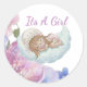 Celebrate the upcoming arrival of your precious little one with this whimsical and enchanting invitation. Featuring a sweet, hand-drawn illustration of a baby girl peacefully sleeping on a soft, fluffy cloud, this design is framed by a delicate border of watercolor flowers in shades of lavender, purple, and soft pink.