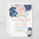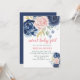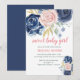 Sweet baby girl floral navy blue pink baby shower invitation