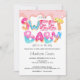 Sweet Baby Girl Is On The Way - a candy themed sweet baby shower invitation - featuring sweet candy detailed text and a blue icing - cute baby shower announcements from Ricaso