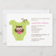 Adorable baby shower invitations feature an adorable vector illustration of a baby creeper or t-shirt with a cute baby owl. Boys, girls or neutral version of this same invitations are available in our store. Custom colours available by request.