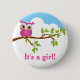 This adorable button with cute little baby girl owl on a branch tree is the perfect finishing touch for your sweet baby owl baby shower invitation . Personalise with your own special text, and use it for the party or event of your choice. Matching items including postage stamps, invitation, thank you cards, thank you stickers and more are also available in our shop. Some Graphics by AMBillustrations at www.etsy.com/shop