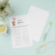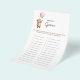 This adorable baby shower game features a charming watercolor illustration of a bear holding onto a soft pink balloon. The game prompts guests to guess what baby items the mom-to-be has chosen for each letter of the alphabet. It's a fun and engaging way to celebrate the upcoming arrival and learn about the little one's nursery essentials. The design has a neutral, earthy color palette, making it perfect for any baby shower theme. Add a touch of sweetness to your celebration with this unique baby item alphabet game.