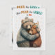 This adorable card features two huggable bears, one brown and one nougat-coloured, embracing each other in a heartwarming moment of affection. The bears are finely detailed and almost look photoreal, making them stand out as the central focus of the card. Both bears are wearing clothes, adding an extra touch of whimsy and personality to the design. The text at the top of the card reads "You mean the world to me", making it a perfect choice for expressing love and appreciation to someone special in your life. This card is sure to make anyone's day a little brighter and a little more cuddly!