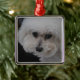 Looks just as depicted on the site. And, the dog's face looks identical to my "sister's" late bichon frise. I bought two, one for her and one for her dad. Great printing, looks great.