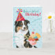 Happy birthday greetings with this cute design featuring a smiling, party hat-wearing Australian Shepherd with an ice cream sundae. Text can be easily changed; just click on customise button.