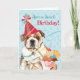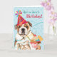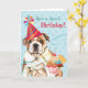 Happy birthday greetings with this cute design featuring a smiling, party hat-wearing Bulldog with an ice cream sundae. Text can be easily changed; just click on customise button.