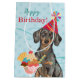 Happy birthday greetings with this cute design featuring a smiling, party hat-wearing Smooth Dachshund with an ice cream sundae. “Have a Sweet Birthday” on front and “Happy Birthday” on the back. Text can be easily changed; just click on customise button.