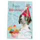 Happy birthday greetings with this design featuring a cute, party hat-wearing Pointer with an ice cream sundae. “Have a Sweet Birthday” on front and “Happy Birthday” on the back. Text can be easily changed; just click on customise button.