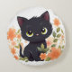 Sweet Black Kitten with Flowers Kawaii Chibi Round Cushion