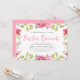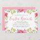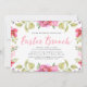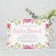 Elegant Easter brunch invitation features a watercolor floral border with hints of pink, purple, and green colours. The brunch invite also features a stylish script font, placeholders for your custom information, and a pink and white polka dot pattern on the back.