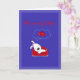 A cozy white pup naps on a red couch, dreaming of hearts above a soft blue backdrop. Inspired by quiet affection and gentle longing, this cartoon-style card brings warmth to any romantic gesture. Perfect for sending love across the miles or just because.