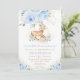 Sweet Blue Floral Baby Deer Fawn Boy Baby Shower Invitation