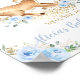 Personalise this chic baby shower welcome sign with your details easily and quickly, simply press the customise it button to further re-arrange and format the style and placement of the text. This elegant sign features an adorable baby deer, beautiful watercolor pastel blue roses and dainty green and gold foliage. Matching items available in store! (c) The Happy Cat Studio.