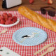 Cute baby shower paper plate, done a blue and white gingham check pattern with graphics of a stork holding a blue baby bundle.  Customise if you want to add text to this lovely baby shower paper plate.  Matching invitations and paper napkins are available.