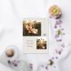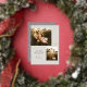 A modern holiday card design featuring two photos and accented by a delicate bow in gold foil. Default greetings reads "Wishing you the gift of family and friendship this holiday season" but can be customised with your personal message.