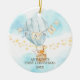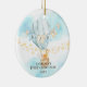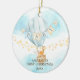 Baby's First Christmas Ornament features a blue hot air balloon with a giraffe, fox & elephant set on a watercolor background with scattered stars. Personalize with your baby name and date and you're all set to go! Wonderful dated keepsake gift for your baby's 1st christmas.