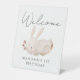 Sweet Bunny Calligraphy First Birthday Welcome Pedestal Sign