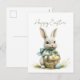 Sweet Bunny Watercolor Floral Easter Holiday Postcard