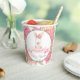These sweet baby shower paper cups are perfect for a girl baby shower in the Spring or Summer. These bunny paper cups feature a cute white rabbit with a circular frame of pink watercolor flowers. There is a banner across the bunny where you can add your name in handwritten script. Put the date of your event at the bottom of this adorable pink floral baby shower cups for a baby girl.