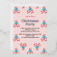 It has illustrations of candy canes tied with a bow and snowflakes.