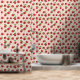 This artwork features a playful and vibrant pattern of cherries scattered across a soft, creamy background. The cherries are illustrated in a bold red colour, with glossy highlights that give them a fresh and juicy appearance. Each cherry is paired with bright green leaves, adding a natural and lively contrast to the design. The overall composition is lighthearted and cheerful, capturing the essence of summer with its bright, fruity motif.