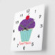 Sweet Cherry on Top Purple Frosting Cupcake Square Wall Clock