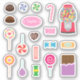 A sweet chocolate and candies sweet with chocolate bar, lollipops, wrapped candies, candy cane and gumball candy machine. Perfect for girls with a sweet tooth to use the stickers for scrapbooking or larger ones to decorate their luggage bags, laptops and things.