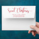 Beautiful festive holiday envelope in white with back top flap showcasing your return address information and attractive phrase "Sweet Christmas" in red modern hand written Script typography. Inside in attractive deep red watercolor wash with gold glitter. Collection with coordinating products available.