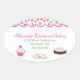 Pretty stickers, with a whimsical pink, green and white polka dot scalloped border, at the top. Cute graphics of colourful cookies, a brownie, and a pink cupcake decorate this too sweet bakery sticker. Text in pink and green is ready to customise for your business. Great for bakeries, home bakers, and cake decorators, to use as seals to cake boxes and other packaging. Personalise for your business.